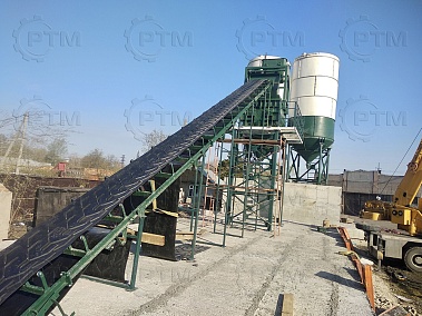 Ленточный конвейер имеет рамную конструкцию с фермами. В нижней и верхней части ленточного конвейера устанавливаются барабаны с футеровкой, ведущий барабан приводится в движение при помощи червячного мотор-редуктора. Конвейерная лента шевронная закрытого типа. В нижней части конвейера имеется приемный бункер, конвейер имеет от бортовку, это необходимо чтобы инертные материалы не просыпались с ленточного конвейера при транспортировки инертных материалов в бетоносмеситель. Все конвейерные ролики оцинкованные.