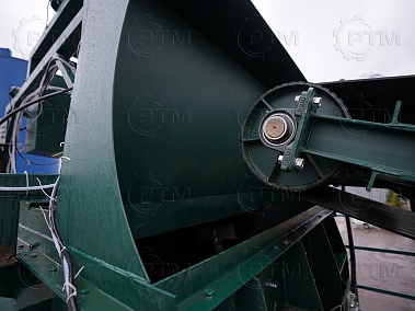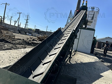 2.      После набора нужного количества материалов инертные попадают на наклонный ленточный конвейер с шевронной лентой. Ширина ленты 600 мм, длинна конвейера 16 метров.