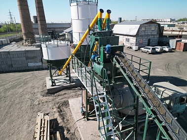 Данный завод производительность от 28 до 36 м3/час товарного бетона марки м200 или раствора. Объём загрузки бетоносмесителя 750 литров, объем выгрузки готового бетона 500 литров. Один цикл не более 55 секунд. Время работы цикла регулируется оператором бетонного завода.