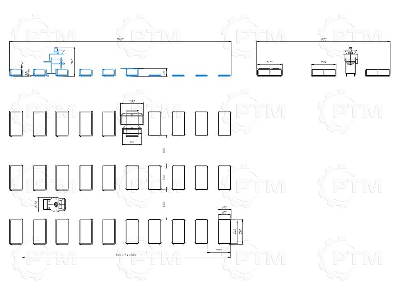 Линия этого исполнения, не превышает производительности 15 м3/сутки. Производительность зависит от количества форм для заливки газобетонной смеси.