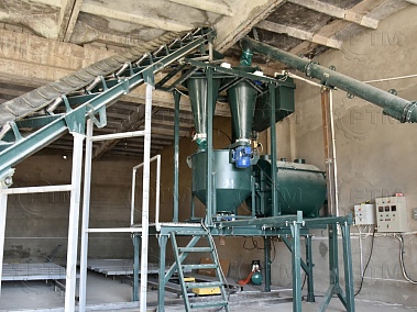 Приемка и загрузка сырья: Начальный этап включает приемку основного сырья, такого как портландцемент, песок, каустическую соду, сульфат натрия и алюминиевую пудру. Сырье загружается в блок весовых дозаторов, в котором происходит взвешивание ингредиентов. Оператор задает какое необходимо количество ингредиентов (цемента, песка), при завершении набора, подающие конвейеры останавливаются. Цемент подается при помощи шнекового конвейера, песок при помощи ленточного конвейера.