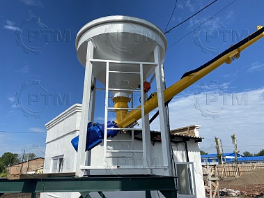 5. Склад цемента и подача в блок дозаторов. При необходимости завод комплектуется складом цемента (силосом или растаривателем биг бэгов). Силос или растариватель биг бэгов (опция) необходим для хранения цемента и различных сухих смесей. Транспортировка из силоса происходит с помощью шнекового конвейера. Силос необходимо подбирать из расчета трехдневного запаса цемента.