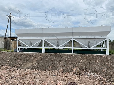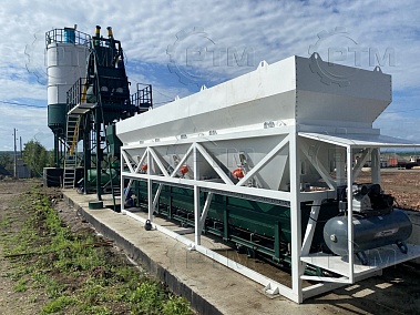 1. Дозирующий комплекс СТ-40 (2 секции по 20 м3): состоит из двух до четырех бункеров для хранения инертных материалов (щебень, песок, отсев). На каждом бункере имеется два пневмо- затвора, необходимых для точной дозации материалов. При дозировании материалы попадают на весовой ленточный конвейер, весовые датчики фирмы CAS Ю.Корея, при наборе нужного количества материалов, заслонки закрываются, подача прекращается. Объем каждого бункера от 2,5 м3 до 20 м3, в зависимости от комплектации завода. Каждый бункер оснащен вибродвигателем MVE 300/3.