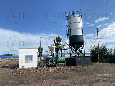 Данный завод производительность от 35 до 45 м3/час товарного бетона марки м200 или раствора. Объём загрузки бетоносмесителя 1200 литров, объем выгрузки готового бетона 800 литров. Один цикл не более 55 секунд. Время работы цикла регулируется оператором бетонного завода.
