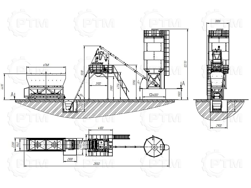 Скиповый бетонный завод с двухвальным бетоносмесителем — это производственное оборудование, которое используется для смешивания и производства бетонной смеси с высокой производительностью и качеством, завод автоматический, принцип “одна кнопка” Он состоит из следующих основных компонентов: